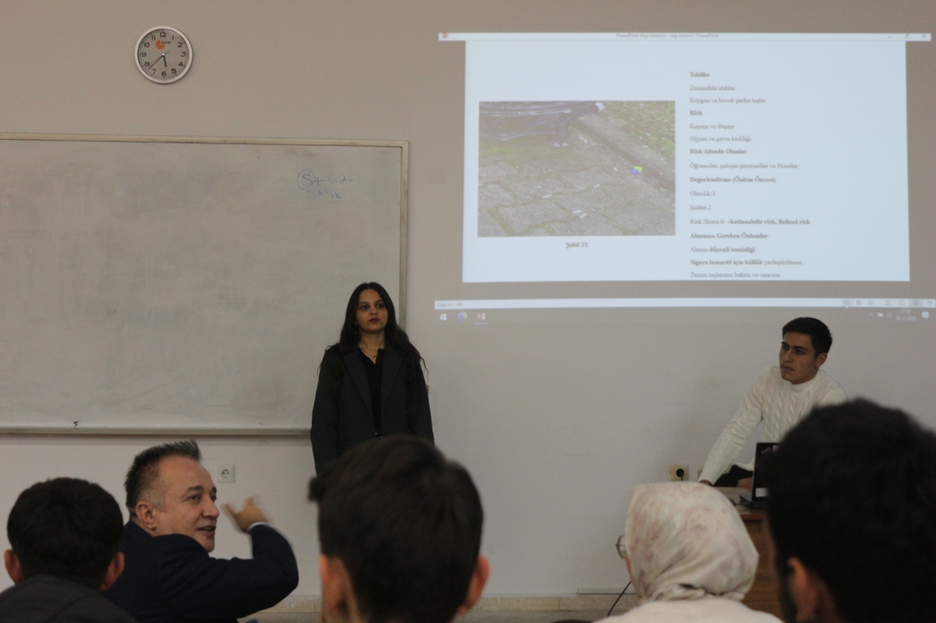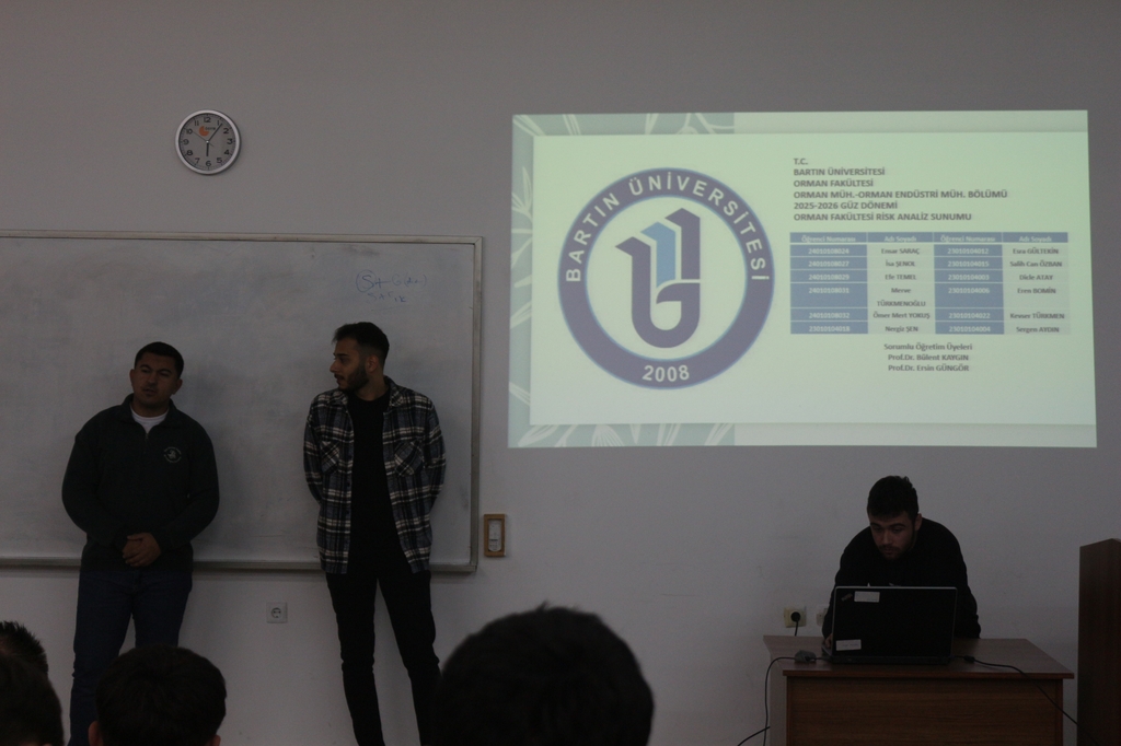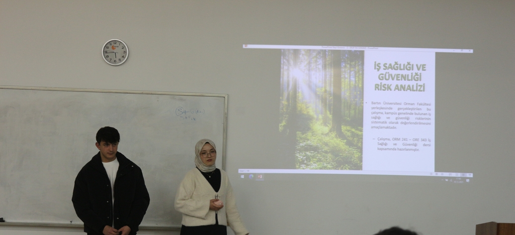 Bu kapsamda, ORM241 İş Sağlığı ve Güvenliği ve ORE343 Ahşap Konstrüksiyonları derslerine kayıtlı öğrenciler, Bartın Orman Fakültesi Binasındaki fiziksel, kimyasal ve psikososyal riskleri belirleyerek alınabilecek önlemleri araştırdı. Akademik danışmanlıklarını Prof. Dr. Bülent KAYGIN ve Prof. Dr. Ersin GÜNGÖR’ün yürüttüğü çalışmada, öğrenciler üç ayrı grup halinde görev aldı.