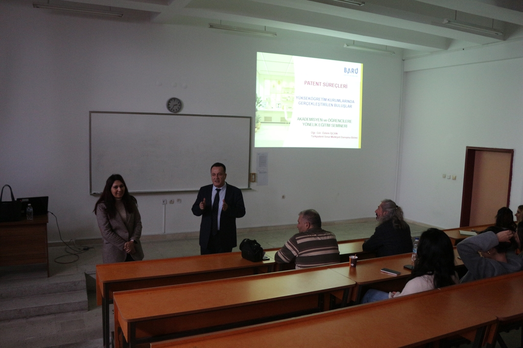 PTO- BARÜTEK Teknokent'de görevli Öğr. Gör. Özlem İŞCAN tarafından verilen eğitimde, patent başvuru süreçleri, faydalı model sisteminin işleyişi, tasarım tescili, koruma kriterleri, başvuru aşamaları ve uygulama örnekleri detaylı bir şekilde ele alındı. Katılımcılar, hem ulusal hem de uluslararası başvuru süreçlerine ilişkin merak ettikleri sorulara yanıt bulma fırsatı yakaladı.